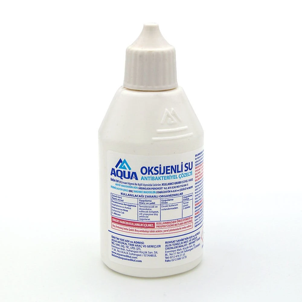 Aqua Oksijenli Su, %3 hidrojen peroksit içeriğiyle cilt üzerindeki küçük yaralanmalar, sıyrıklar ve kesiklerde güvenli antiseptik temizlik sağlar. Renk ve koku içermeyen yapısıyla doğrudan uygulanabilir. Klinik, ev tipi ve ilk yardım çantalarında kullanım için uygundur. Kolay taşınabilir 100 ml ambalajda sunulur.